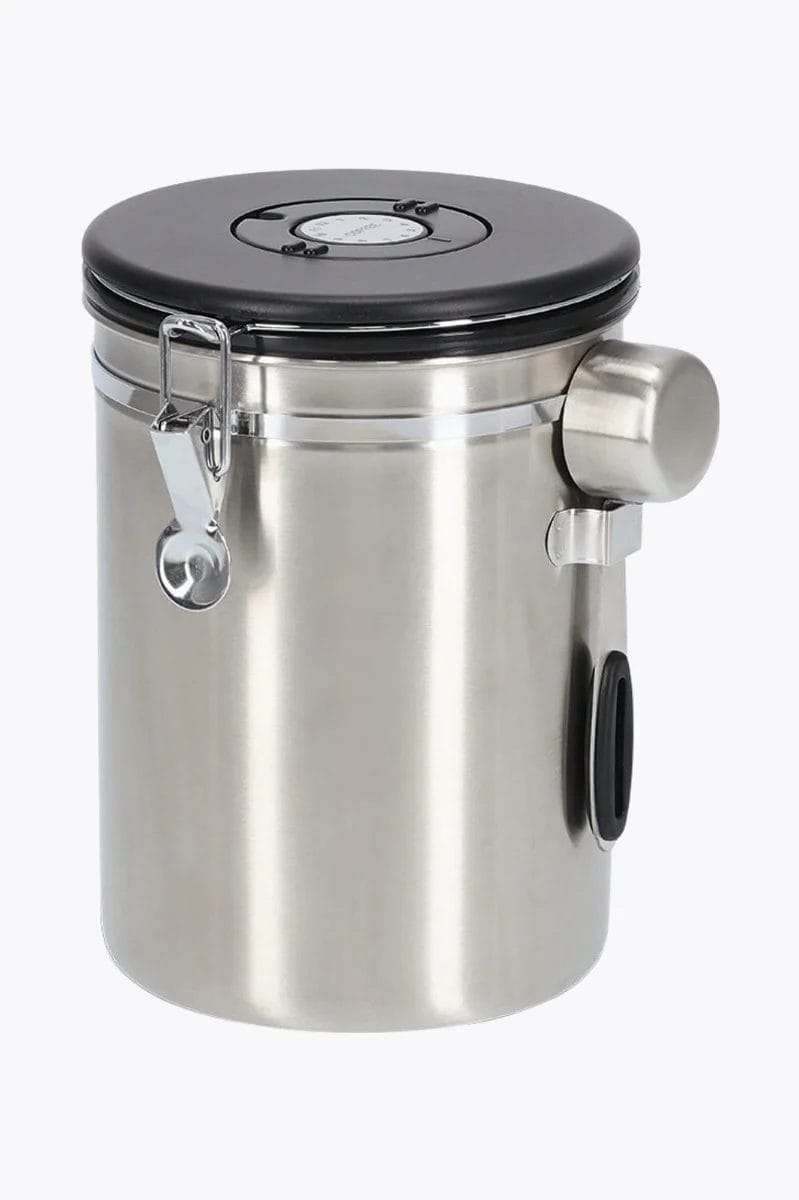 Izdelana iz kakovostnega nerjavečega jekla in trpežne plastike, zagotavlja optimalno shranjevanje kavnih zrn ali mlete kave.