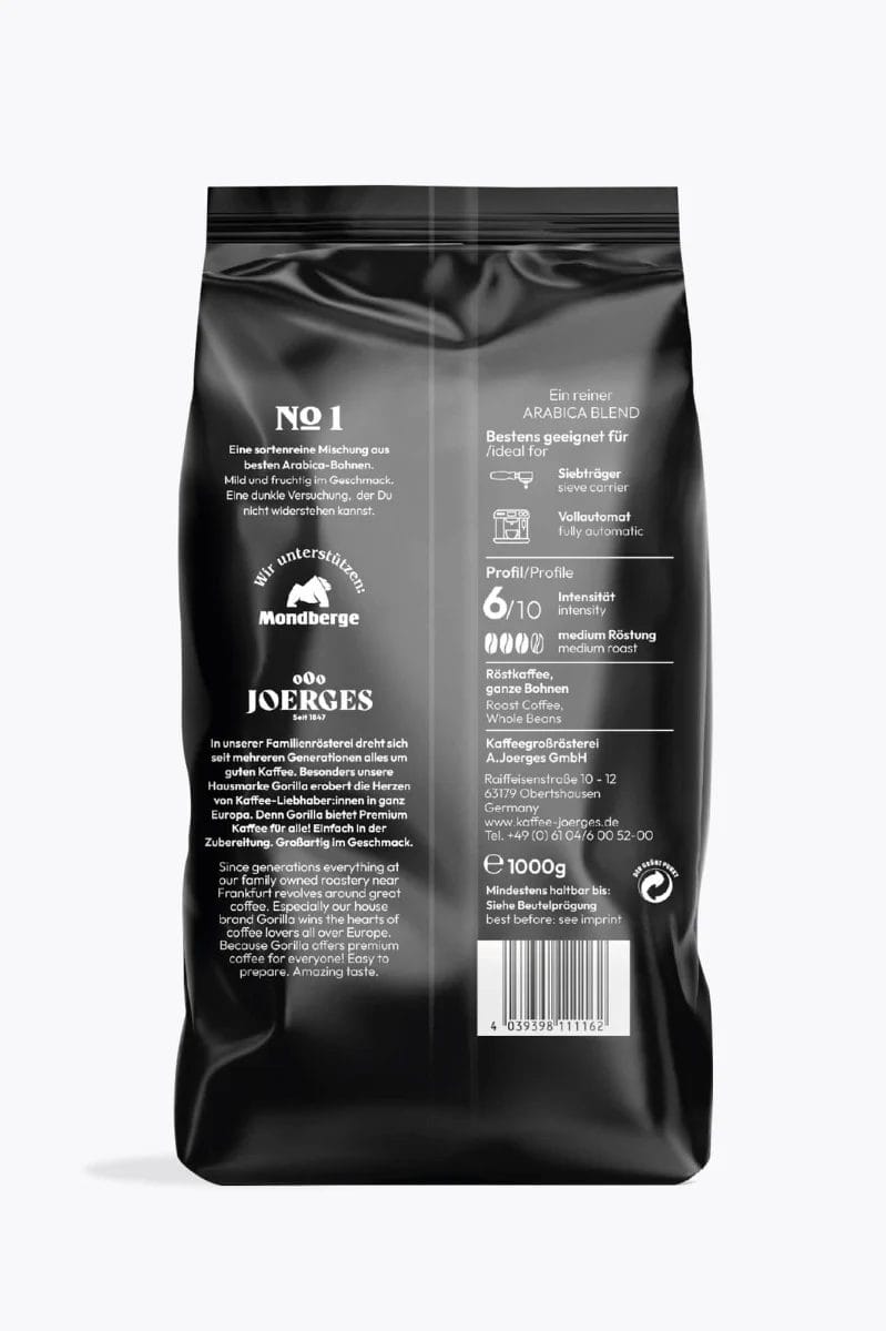 Gorilla Crema No. 1 je ena izmed najboljših kav iz linije Gorilla, ki je izdelana iz najboljših visokogorskih arabica kavnih zrn. Nežno praženje jo naredi posebej blagodejno. Kljub temu pa je okusna izkušnja Gorilla Crema No. 1 aromatična z diskretnimi cvetličnimi aromami in sadežno okusno noto. V bobnasti pražilnici se zrna pražijo med dvanajst in dvajset minut pri največji temperaturi 220 °C. Zaradi tega počasnega in nežnega postopka kava izgubi grenkobo, vredni aromi pa se lahko popolnoma razvije. Bodisi kot espresso z stabilno kremo ali kot kava: poln okus in rahla kislost ji dajeta posebno harmonijo. Zaradi nizke vsebnosti kofeina je Gorilla Crema No. 1 pravi užitek ob kateremkoli času dneva. Kave Gorilla kave prejemamo sveže pražene iz pražarne!