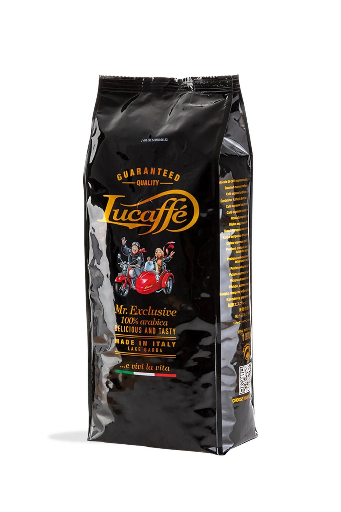 Lucaffé Mr. Exclusive 100% Arabica je vrhunska mešanica, sestavljena iz 100% Arabica zrn. Srednja praženost daje espressu posebno intenzivno aromo z rahlo sladkim okusom in notami rjavega sladkorja ter pečenega kruha. Zaradi svoje polnosti in bogatega okusa je popoln za cappuccino in latte macchiato. Posebnost te kave je njena izjemna krema. Vse Lucaffé kave se pražijo počasi in nežno v bobnasti pražarni, kar odstrani grenke snovi in ustvari zelo mehko kavo. Visokokakovostna zrna prihajajo iz Južne Amerike, Azije in delno iz Afrike.