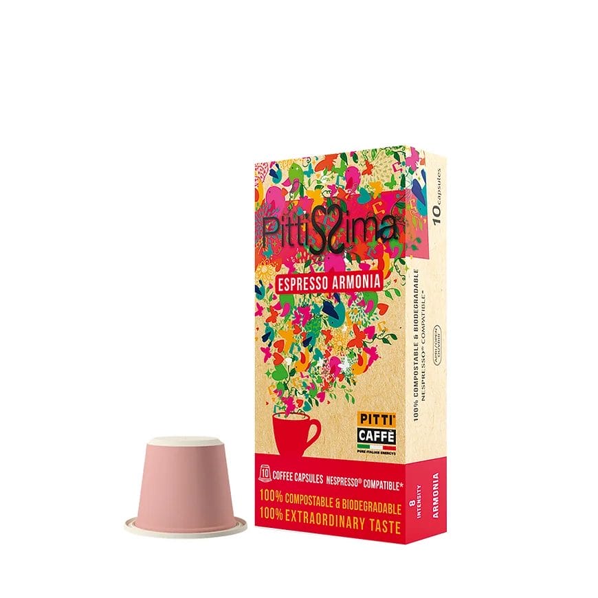 Razvajajte svoje brbončice z Espresso Armonia v kompostabilnih kapsulah Pitti Caffè. Ta skrbno izbrana mešanica kavnih zrn se ponaša s harmonično uravnoteženim okusom, ki združuje bogato aromo in nežne note. S kompostabilnimi kapsulami pa poleg vrhunskega užitka poskrbite tudi za okolju prijazno pripravo vaše najljubše kave.