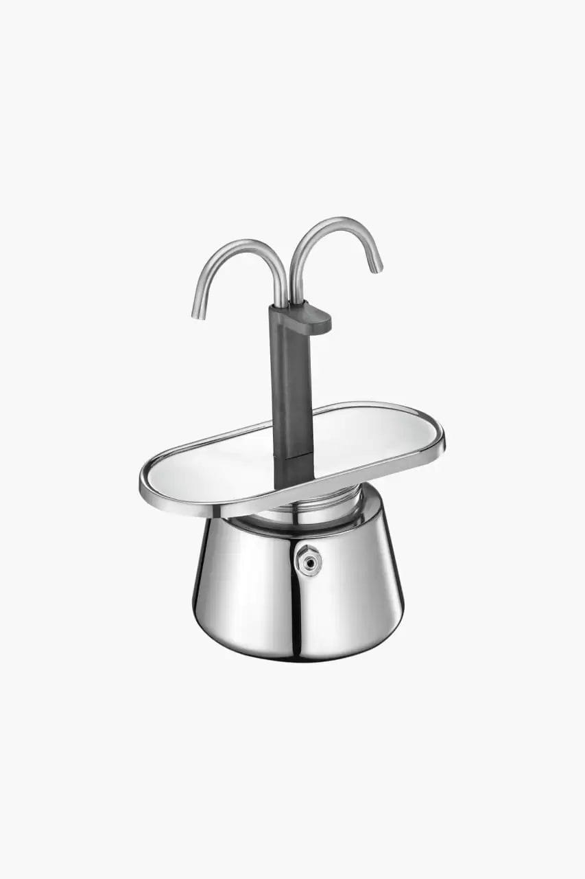 S svojim prefinjenim dizajnom je pravi okras vsake kuhinje. Primerna je za vse vrste kuhalnikov, vključno z indukcijo. Enostavno jo napolnite z espresso praškom in vodo, postavite dve skodelici pod izliv in uživajte v dišeči kavi, ki vas bo spomnila na sončne popoldneve v Italiji.